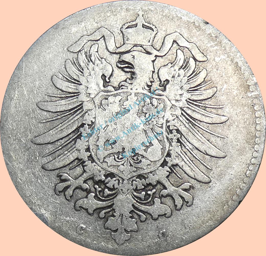 1 Mark Kursmünze -kl. Adler- 1874 C -deutsches Kaiserreich- s J.9 -0909-