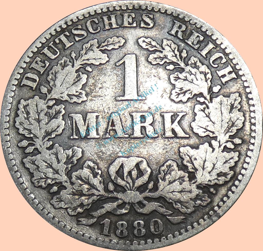 1 Mark Kursmünze -kl. Adler- 1880 E -deutsches Kaiserreich- s J.9 -0910-