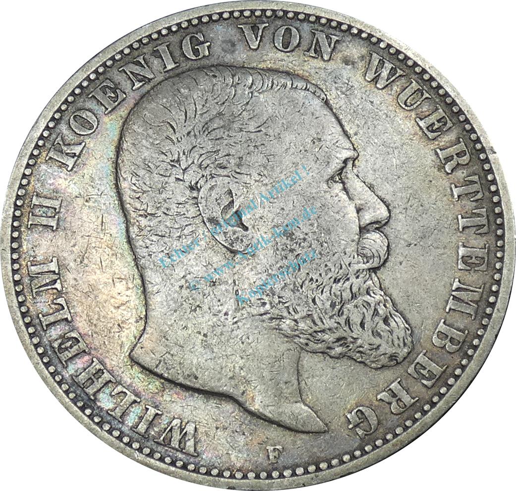 5 Mark Kursmünze 1895 -Wilhelm II König v. Württemberg- ss J.176 -0904-