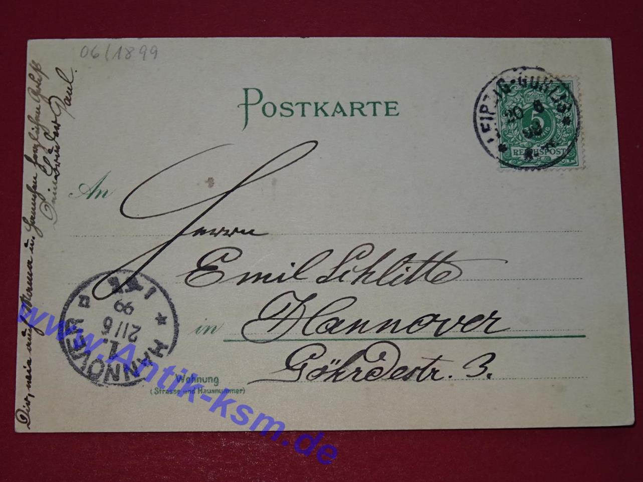Ansichtskarte , Postkarte der Stadt Leipzig , Sachsen Anhalt , Motiv neues Theater , gelaufen im Jahr 1899 , gute Erhaltung siehe Bilder