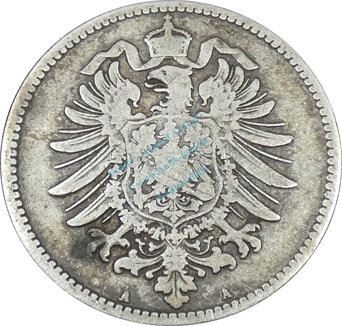 1 Mark Kursmünze -kl. Adler- 1876 A -deutsches Kaiserreich- s-ss J.9 -0843-