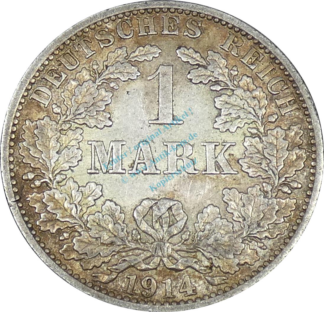 1 Mark Kursmünze -gr. Adler- 1914 A -deutsches Kaiserreich- s-ss J.17 -0851-