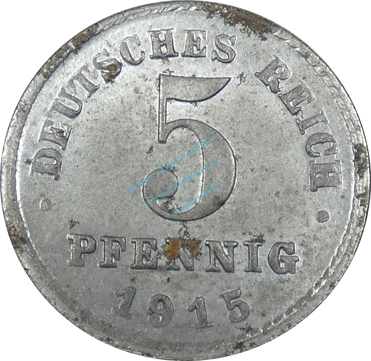 5 Pfennig Kursmünze -Reichsadler- 1915 D -deutsches Kaiserreich- s-ss J.297 -0900-