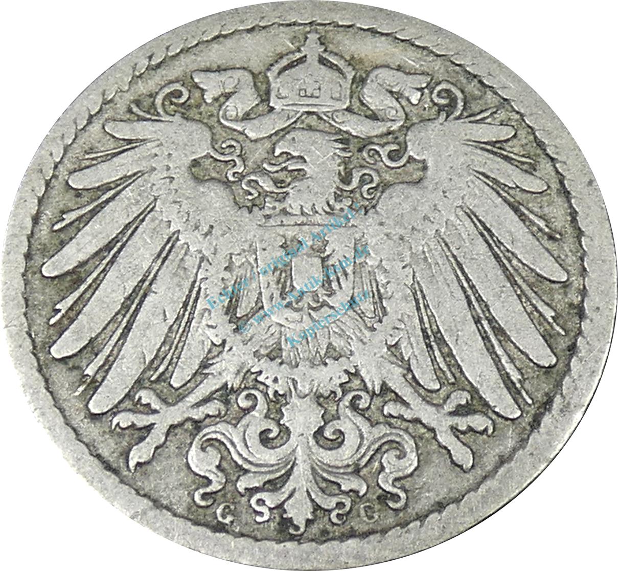 5 Pfennig Kursmünze -gr. Adler- 1890 G -deutsches Kaiserreich- s-ss J.12 -0834-