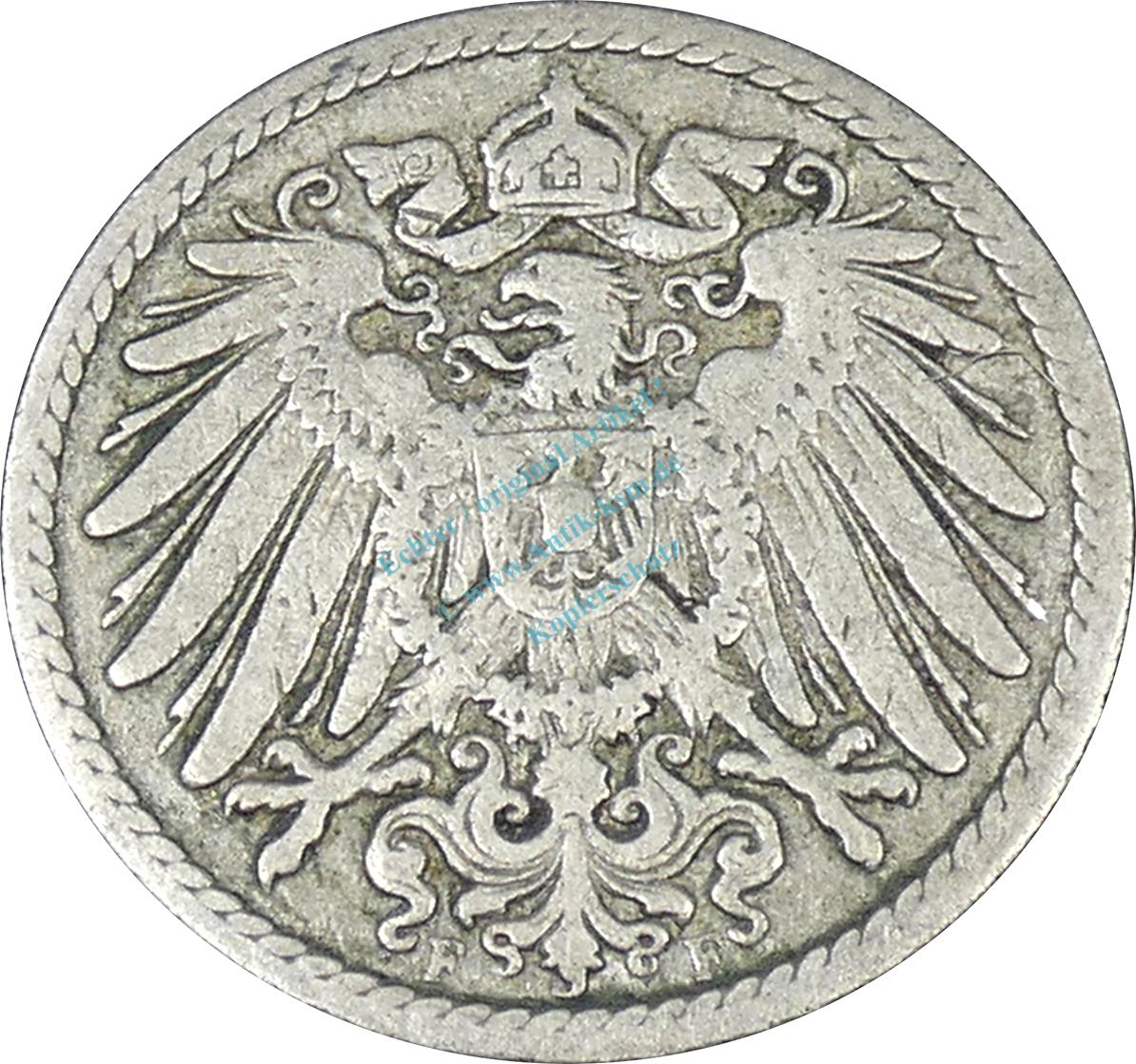 5 Pfennig Kursmünze -gr. Adler- 1892 F -deutsches Kaiserreich- s-ss J.12 -0838-