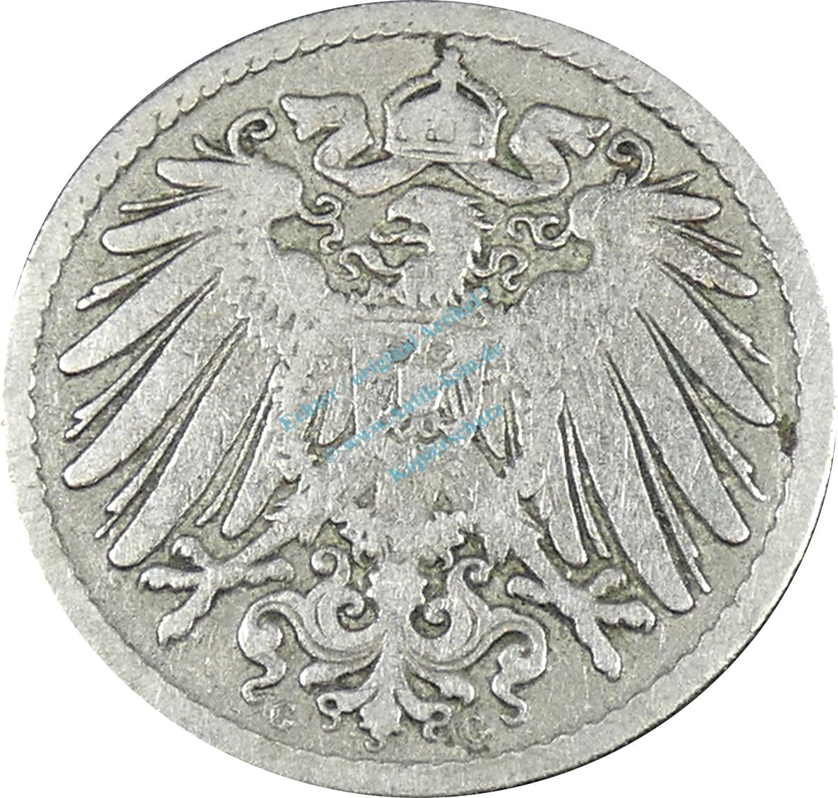 5 Pfennig Kursmünze -gr. Adler- 1892 G -deutsches Kaiserreich- s-ss J.12 -0872-