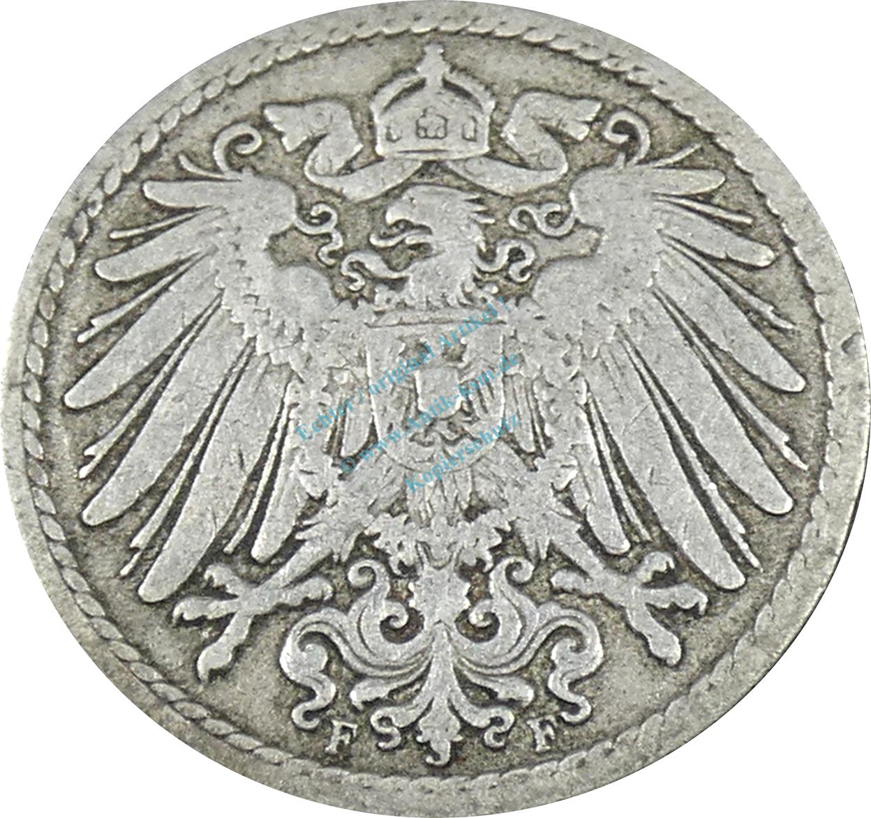 5 Pfennig Kursmünze -gr. Adler- 1895 F -deutsches Kaiserreich- s-ss J.12 -0876-