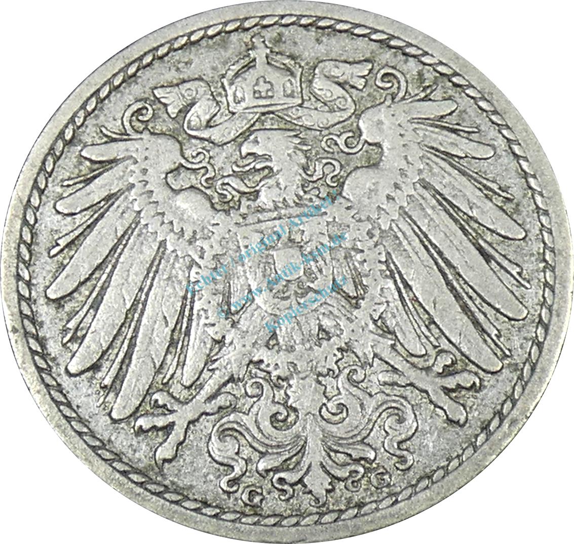 Preview: 5 Pfennig Kursmünze -gr. Adler- 1903 G -deutsches Kaiserreich- ss-vz J.12 -0887-