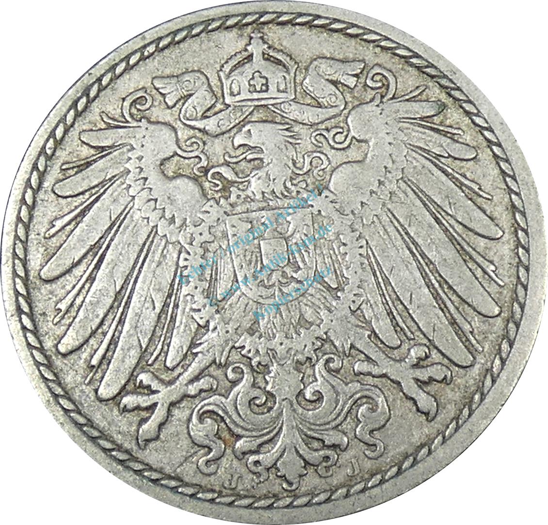 Preview: 5 Pfennig Kursmünze -gr. Adler- 1904 J -deutsches Kaiserreich- s-ss J.12 -0890-