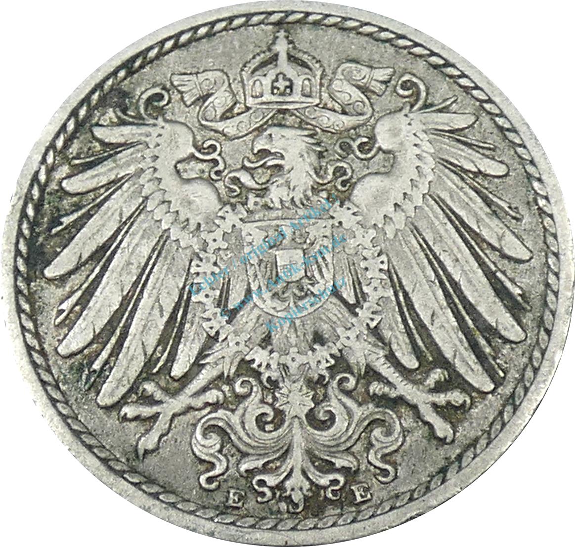 5 Pfennig Kursmünze -gr. Adler- 1909 E -deutsches Kaiserreich- ss J.12 -0891-