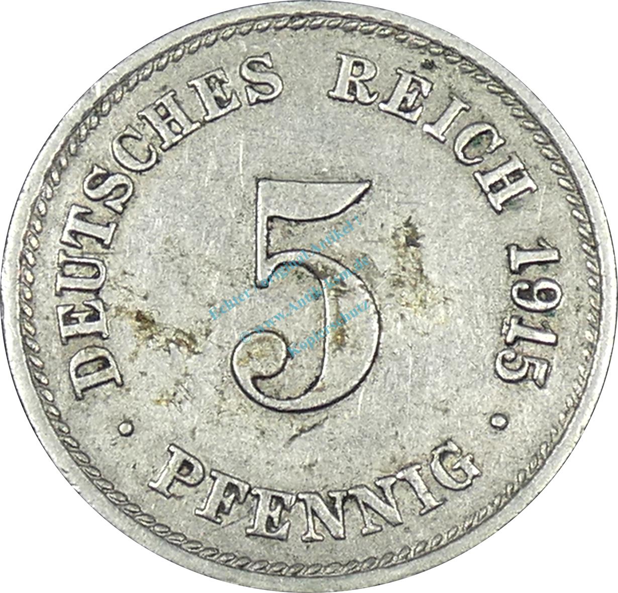 5 Pfennig Kursmünze -gr. Adler- 1915 G -deutsches Kaiserreich- ss-vz J.12 -0896-