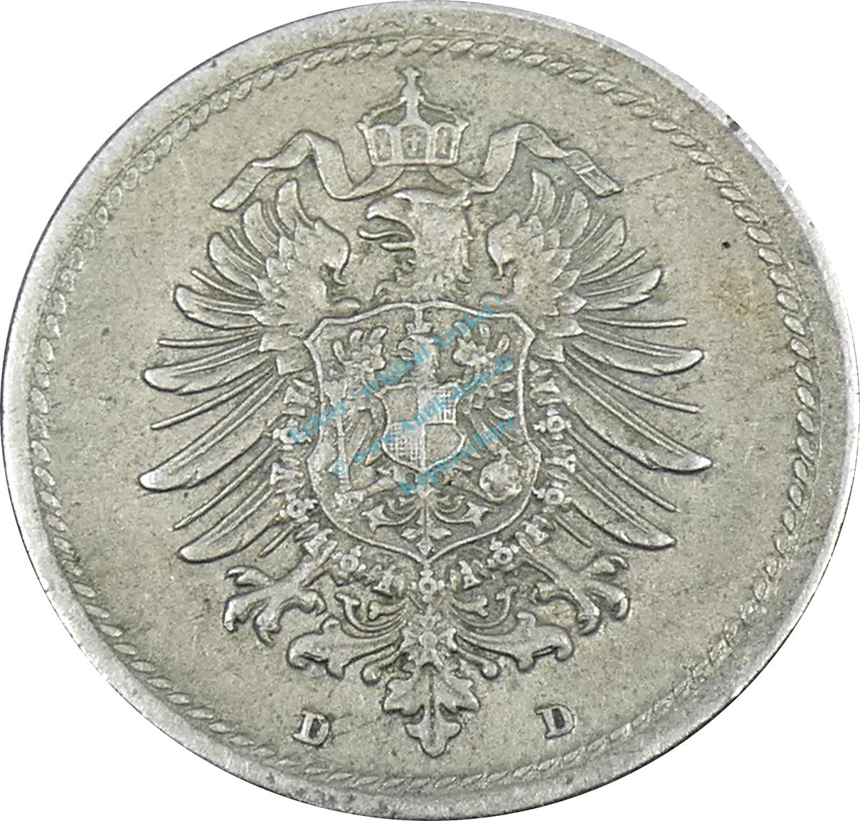 Preview: 5 Pfennig Kursmünze -kl. Adler- 1875 D -deutsches Kaiserreich- s-ss J.3 -0829-