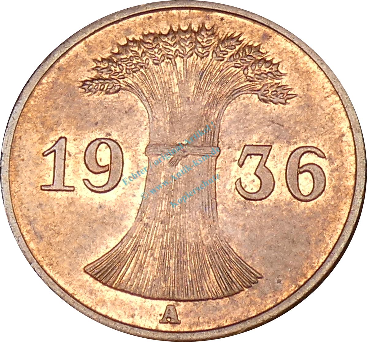 1 Pfennig Kursmünze 1936 A -Deutsches Reich- ss-vz , J.313 -0774-