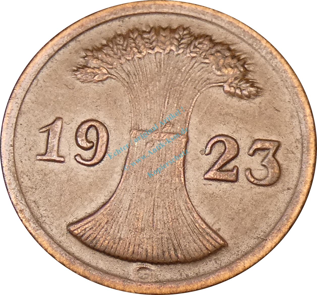 2 Rentenpfennig Kursmünze 1923 G -Deutsches Reich- ss-vz , J.307 -0776-
