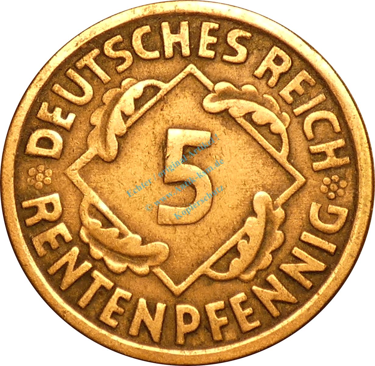 5 Rentenpfennig Kursmünze 1923 F -deutsches Reich- ss , J.308 -0737-