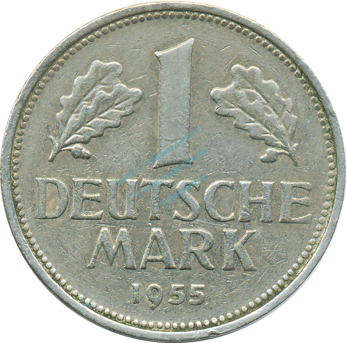 1 Mark Kursmmünze 1955 G -Bundesrepublik Deutschland- s-ss , J.385 -0704-