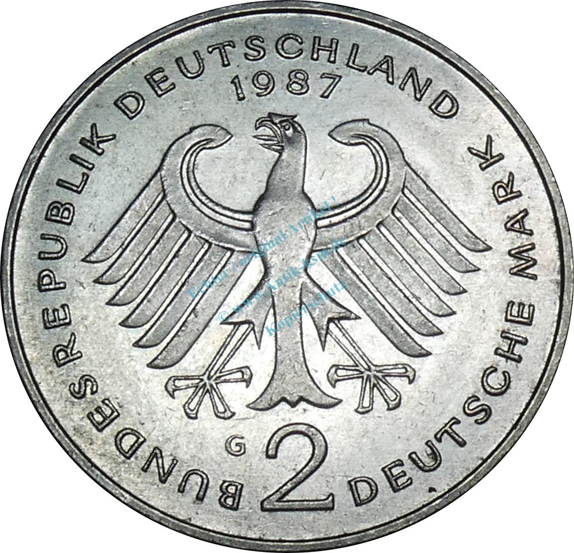2 Mark Kursmmünze 1987 G -BRD Konrad Adenauer- ss-vz , J.406 -0676-