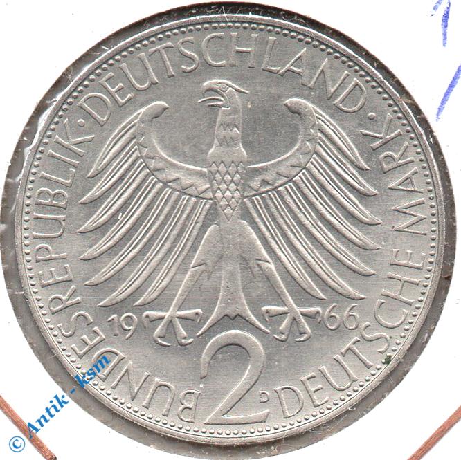 Kursmünze Deutschland , 2 Mark 1966 D , Max Planck , ss+ bis vz , Jäger 392 , Bundesrepublik Deutschland