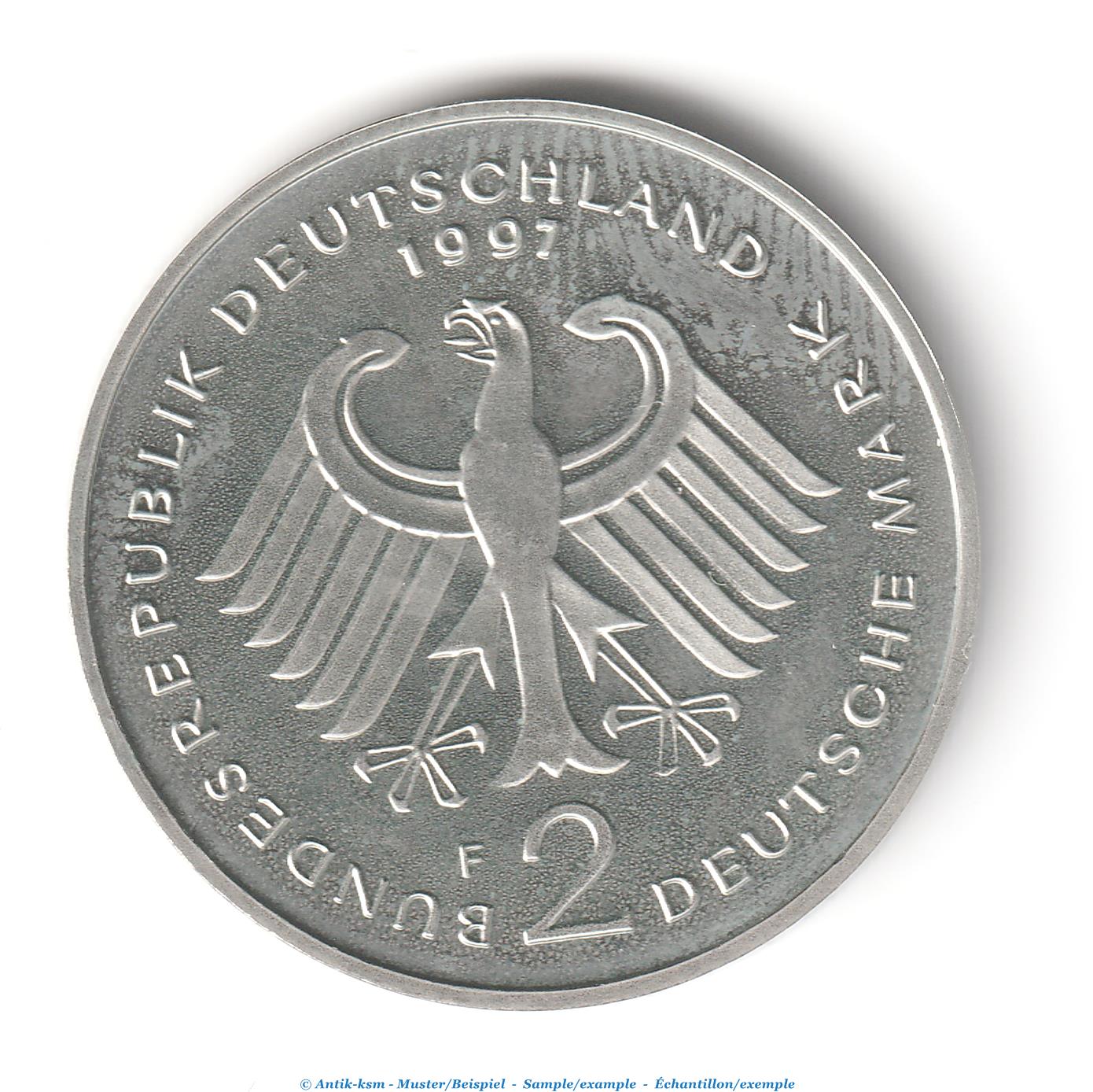 Kursmünze Deutschland , 2 Mark Münze -Franz Josef Strauß- 1997 F , stgl , J.450 Bundesrepublik