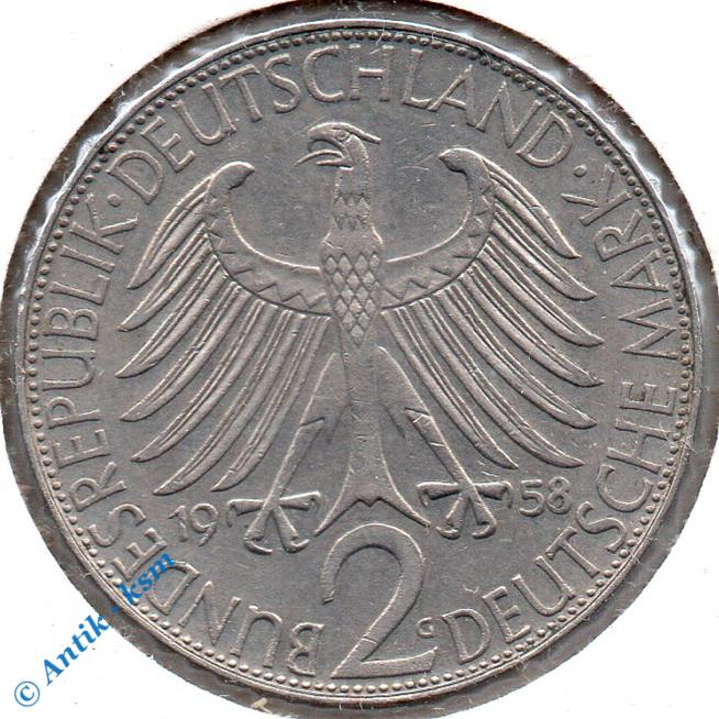 Kursmünze Deutschland , 2 Mark Münze von 1958 G , Max Planck , ss bis vz , Jäger 392 , Bundesrepublik Deutschland