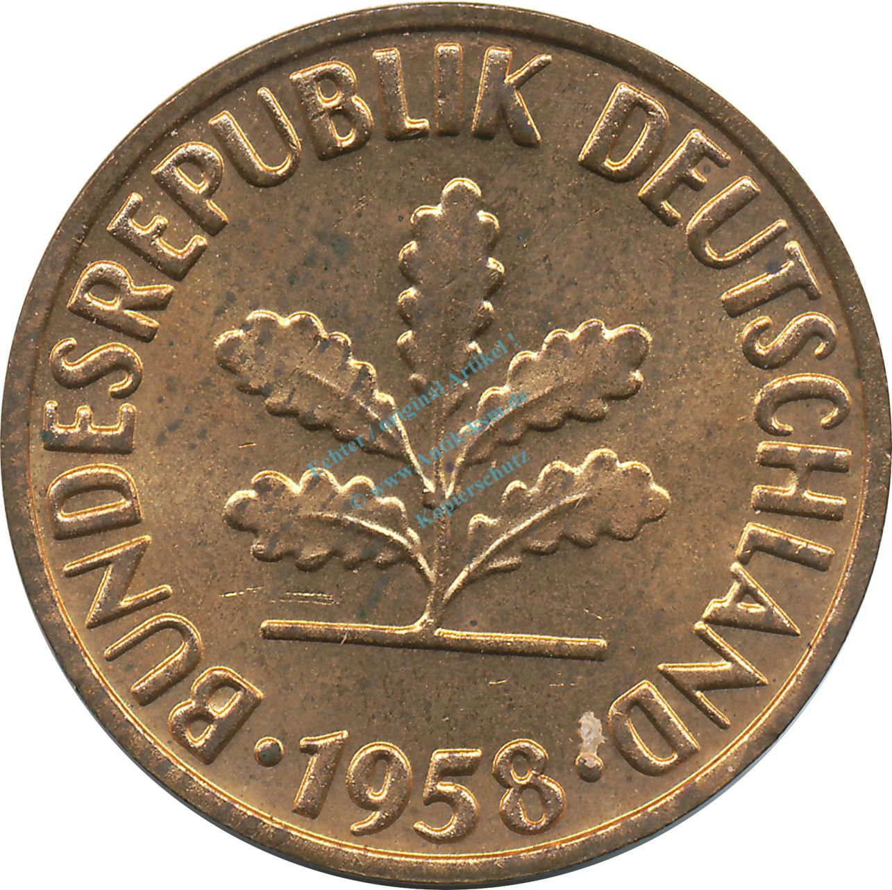 2 Pfennig Kursmmünze 1958 F -Bundesrepublik Deutschland- ss-vz , J.381 -0685-