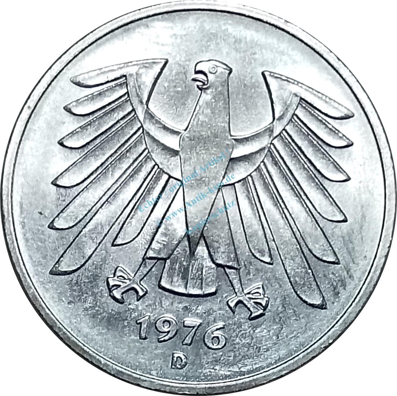 5 Mark Kursmmünze 1976 D -Bundesrepublik Deutschland- ss-vz , J.415 -0668