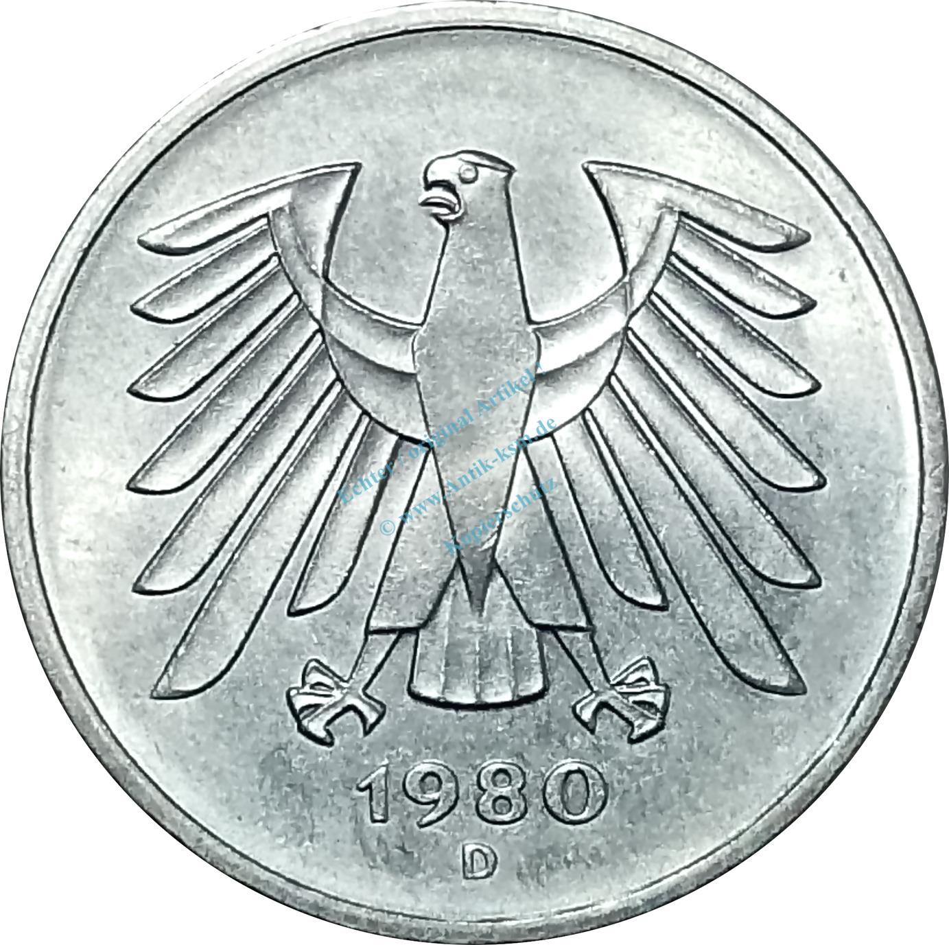 5 Mark Kursmmünze 1980 D -Bundesrepublik Deutschland- ss-vz , J.415 -0669-
