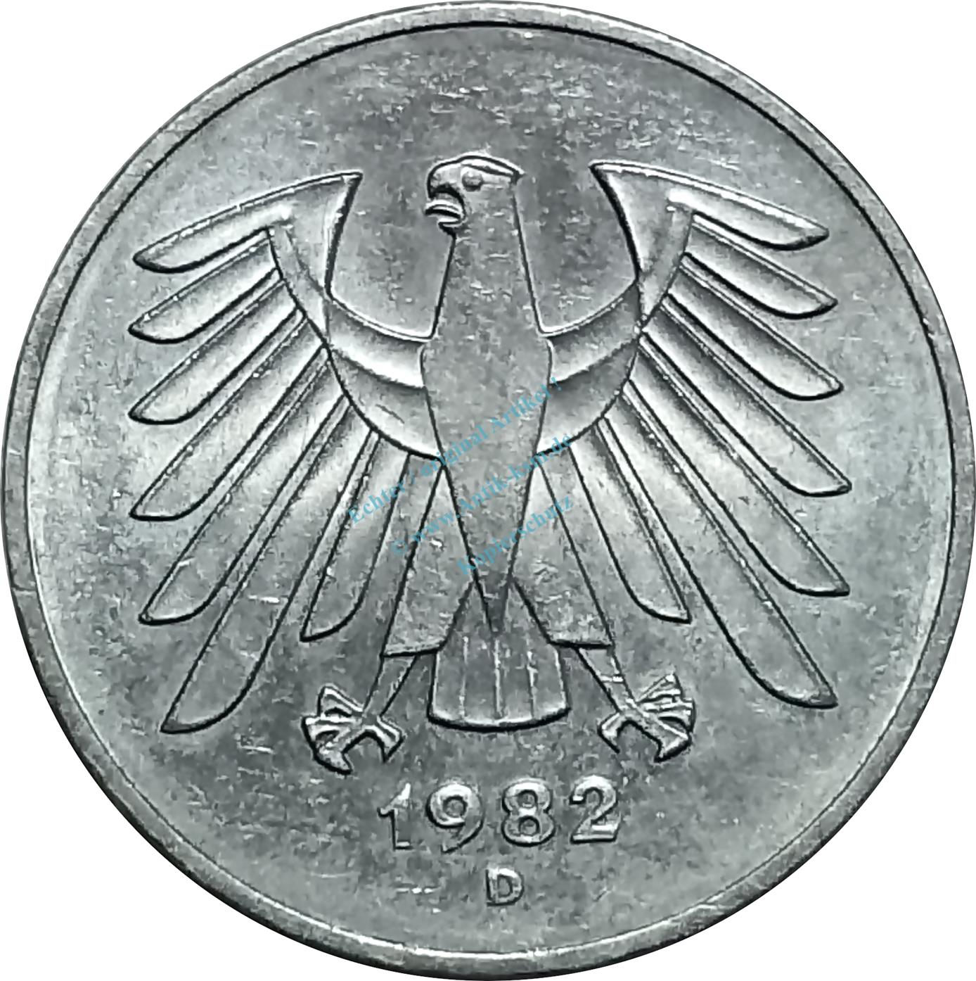 5 Mark Kursmmünze 1982 D -Bundesrepublik Deutschland- ss-vz , J.415 -0670