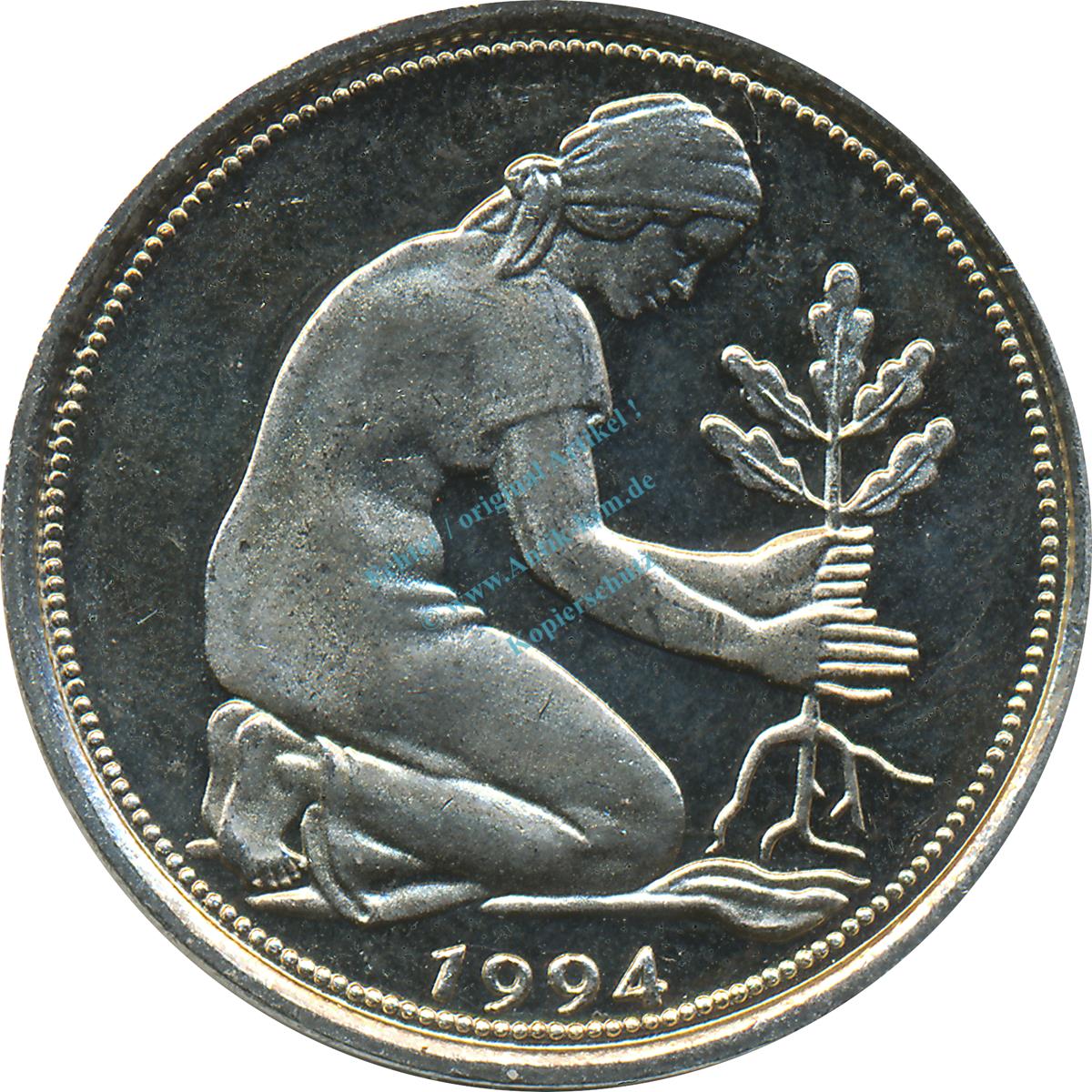 50 Pfennig Kursmmünze 1994 D -Bundesrepublik Deutschland- vz-stgl , J.384 -0688-