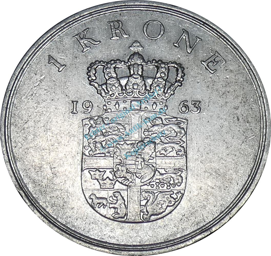 Dänemark , 1 Krone Münze 1963 -Frederik IX- KM.851.1 ss-vz -0250-