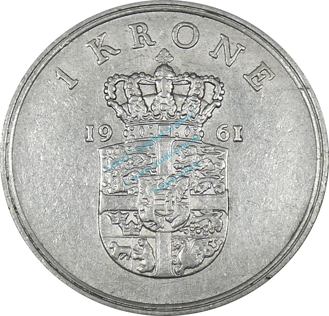 Dänemark , Münze 1 Krone 1961 -Frederik IX- KM.851.1 ss-vz -0241-