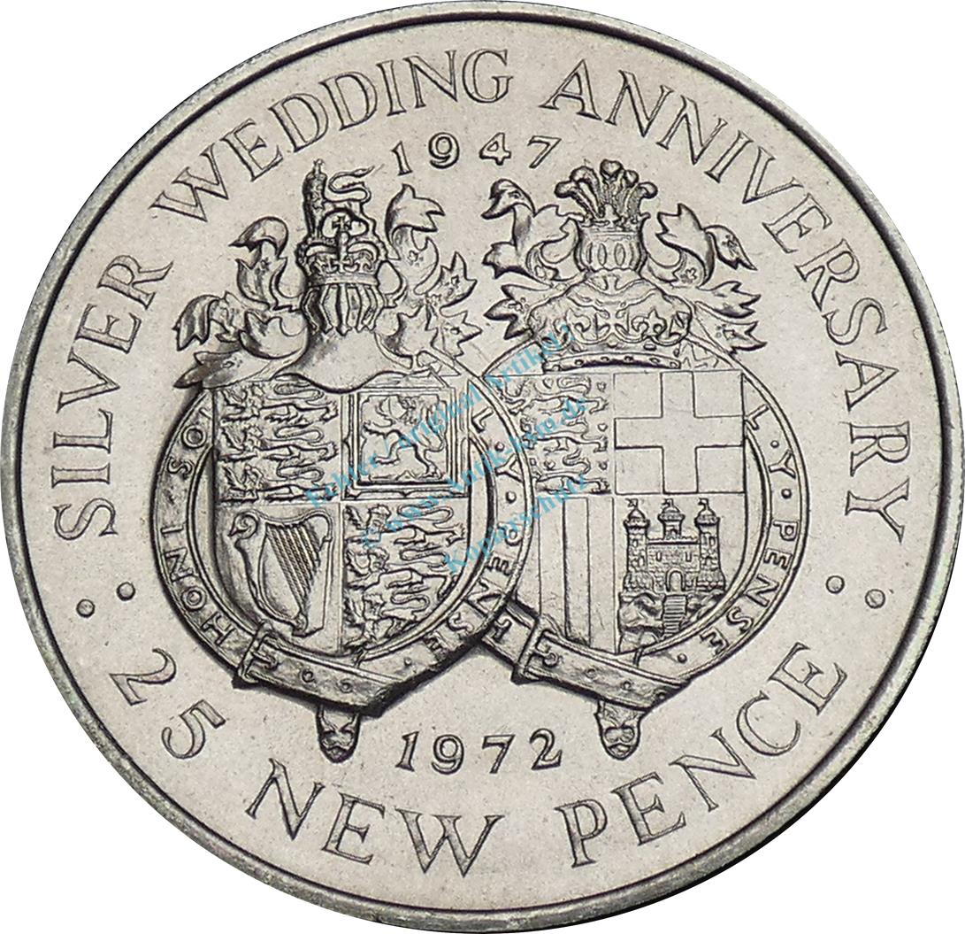 Gibraltar , 25 Pence Münze 1972 -Silver Wedding Anniversery- KM.6 vz-stgl -0297-