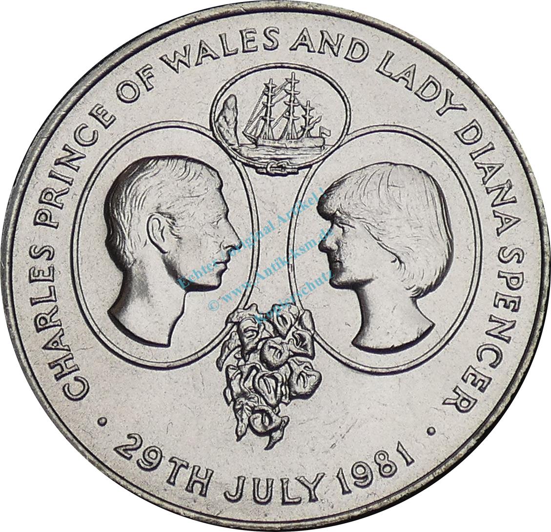 St. Helena , 25 Pence Münze 1981 -Charles and Lady Diana- KM.9 vz-stgl -0299-