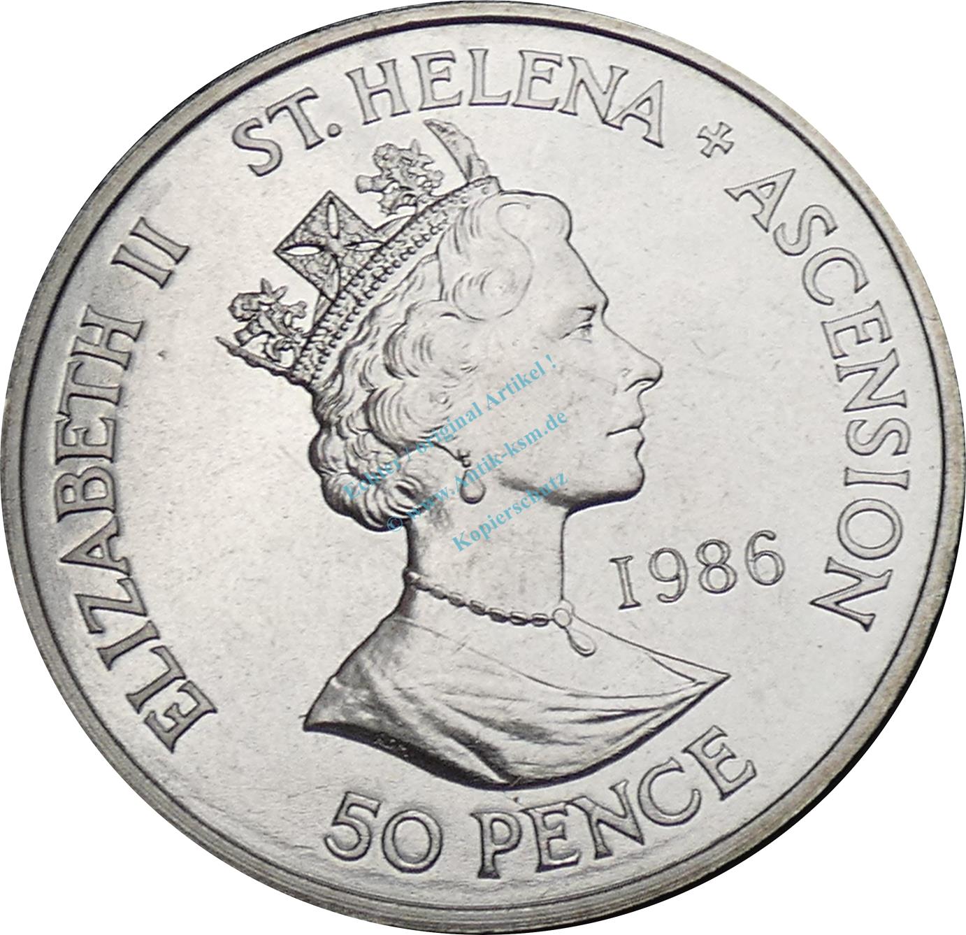 St. Helena , 50 Pence Münze 1986 -Napoleon 5.Mai.1821- KM.8 vz-stgl -0289-