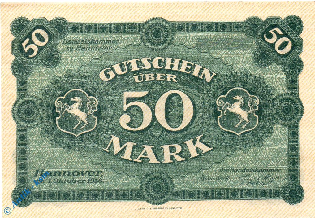 Notgeld Schein über Fünfzig Mark , Handelskammer Hannover , Großnotgeld , Musterschein