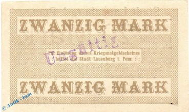 Banknote Lauenburg , 20 Mark Schein in kfr. E , Geiger 310.03.a , 15.11.1918 , Pommern Großnotgeld