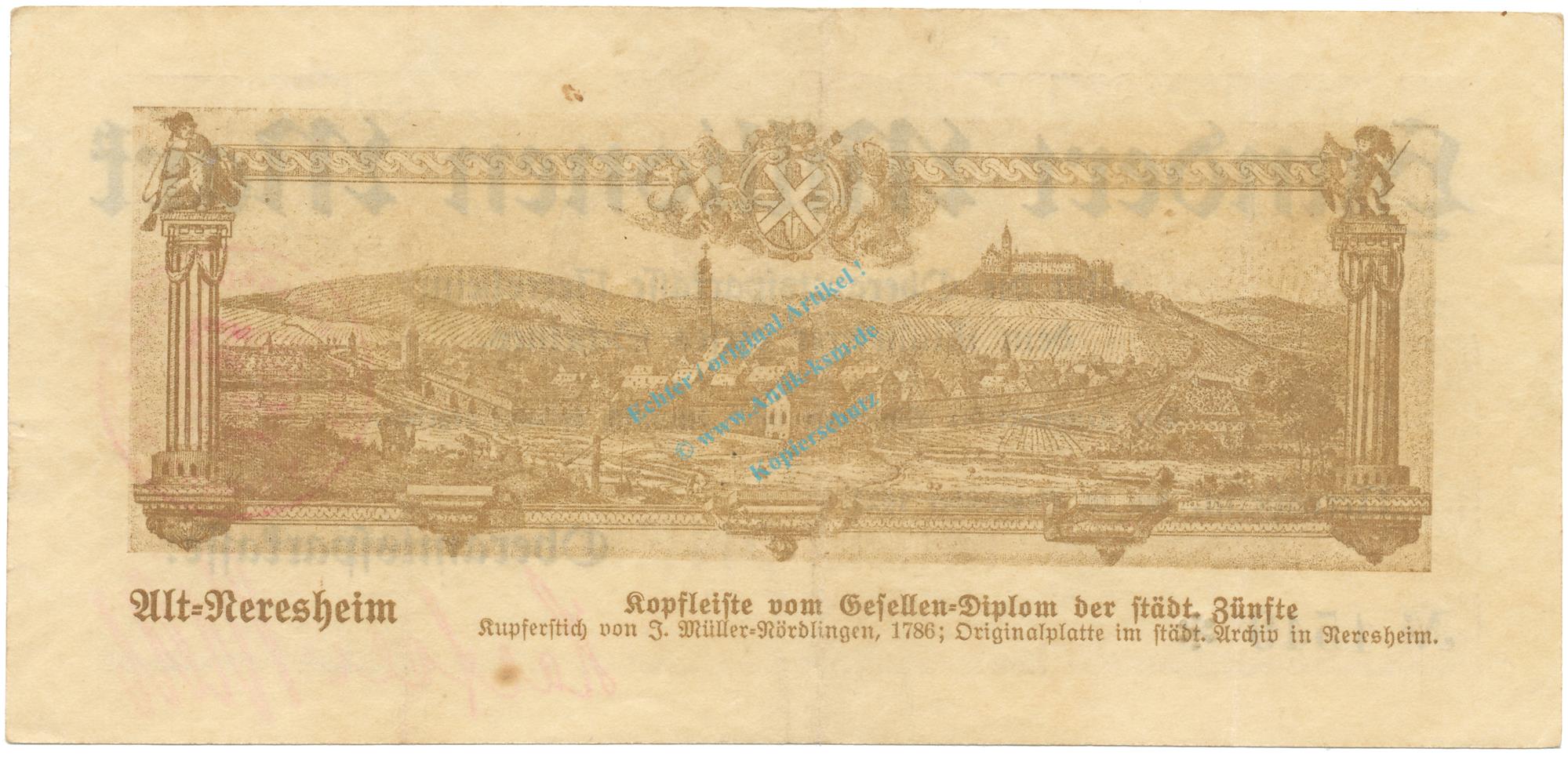 Notgeld / Gutschein / Scheck : Oberamtssparkasse Neresheim , Wz. Bandwerk , 28.09.1923