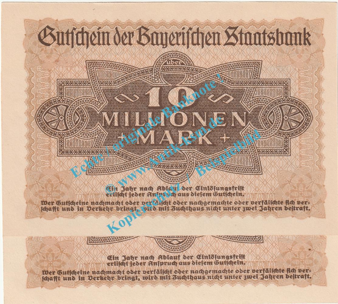 München , Banknoten 2 x 10 Millionen Mark -KN fortlaufend- in kfr. Keller 3657.d , Bayern 1923 Grossnotgeld - Inflation