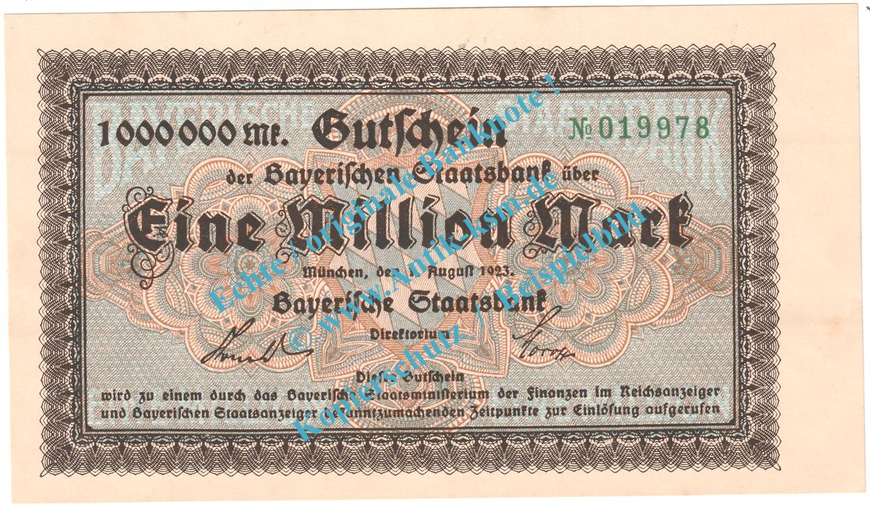 München , Notgeld 1 Million Mark Schein in kfr. Keller 3657.a , Bayern 1923 Grossnotgeld Inflation
