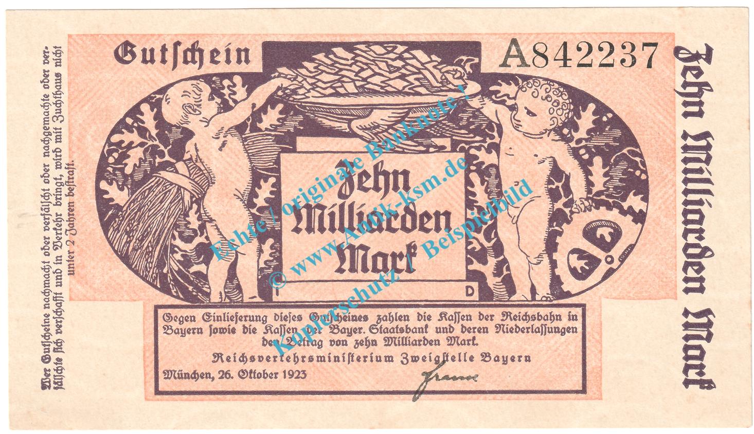 München , Notgeld 10 Milliarden Mark Schein in kfr. Keller 3669.d , Bayern 1923 Grossnotgeld Inflation