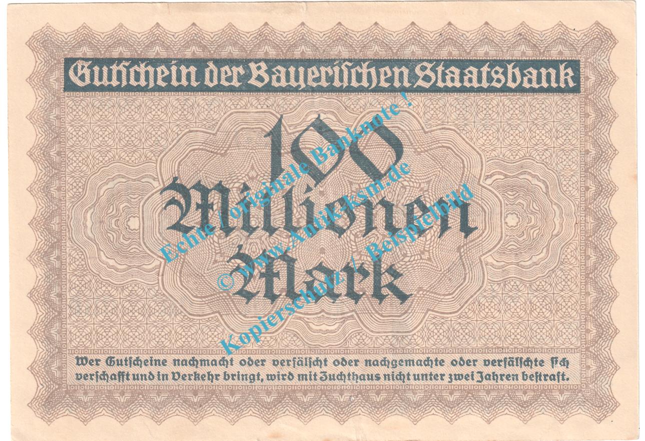 München , Notgeld 100 Millionen Mark Schein in f-kfr. Keller 3657.e , Bayern 1923 Grossnotgeld Inflation