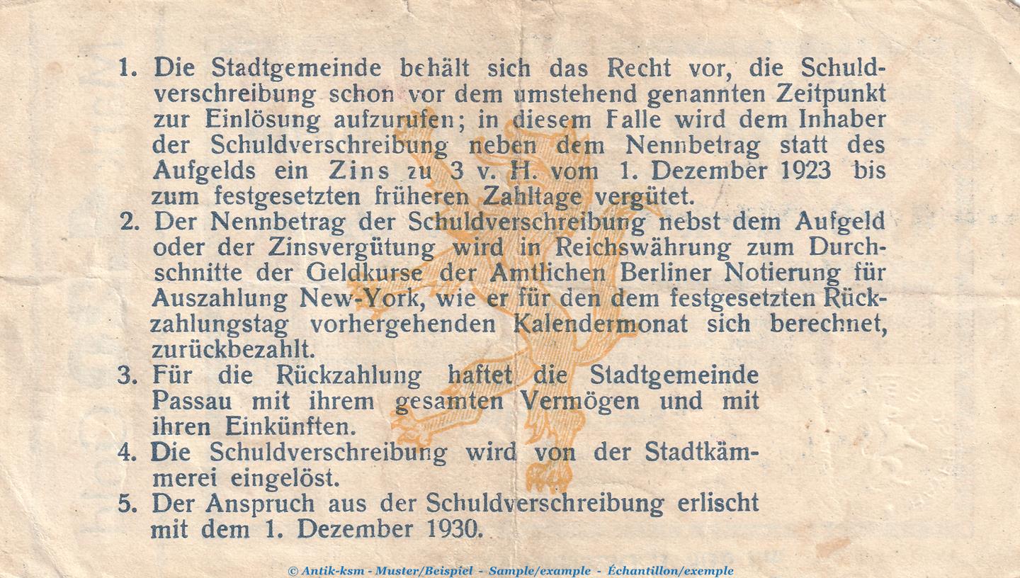 Notgel Stadt Passau, 4,20 Gold Mark Schein in gbr. Müller 3795.5 von 1923 , Bayern wertbeständiges Notgeld
