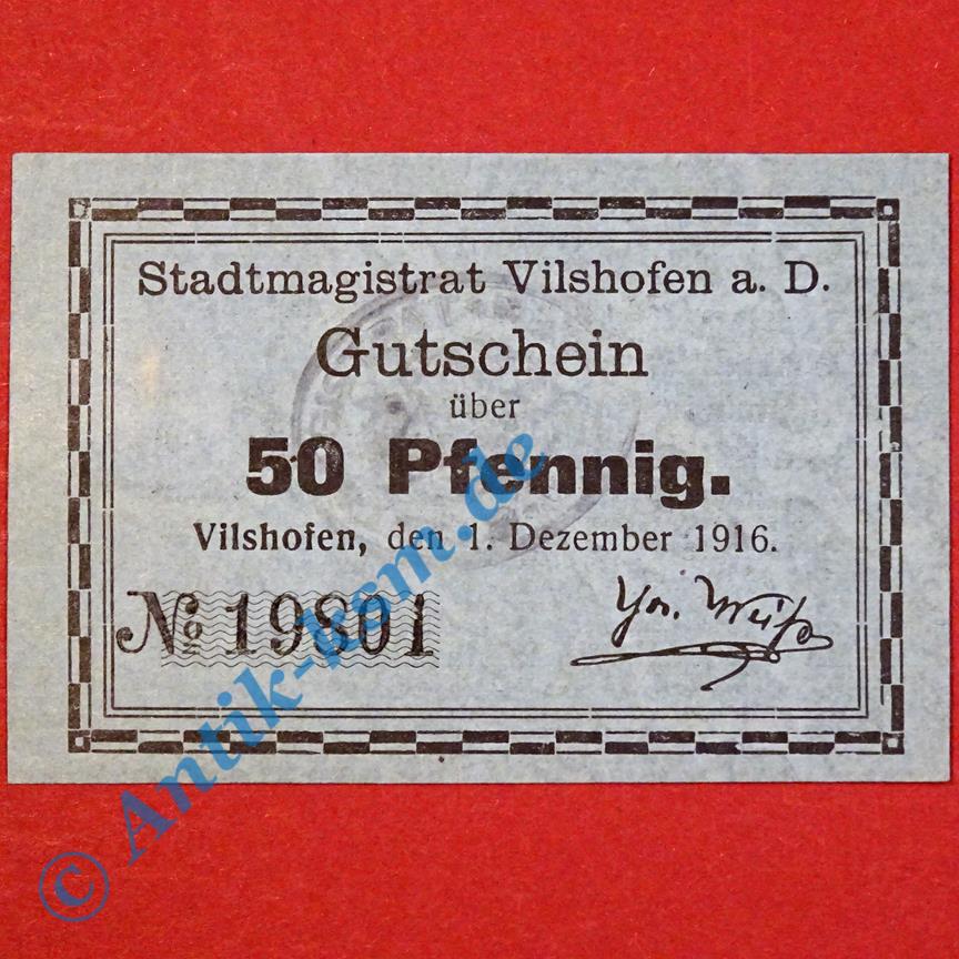 Notgeld Vilshofen , Schein über 50 Pfennig , Tieste 7610.15 , von 1916 , Bayern Verkehrsausgabe
