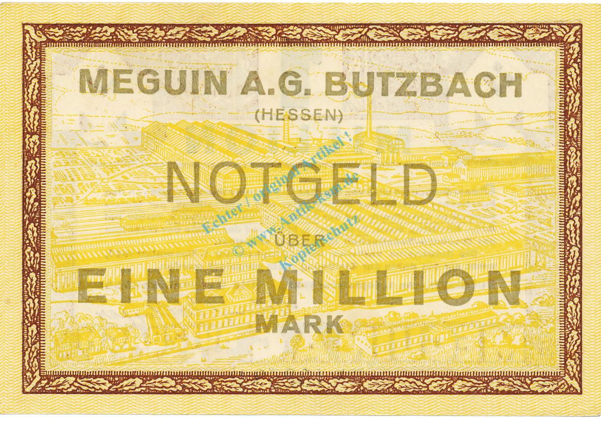 Butzbach , Banknote 1 Million Mark Schein unc-kfr. Keller 702.b , Hessen 1923 Inflation