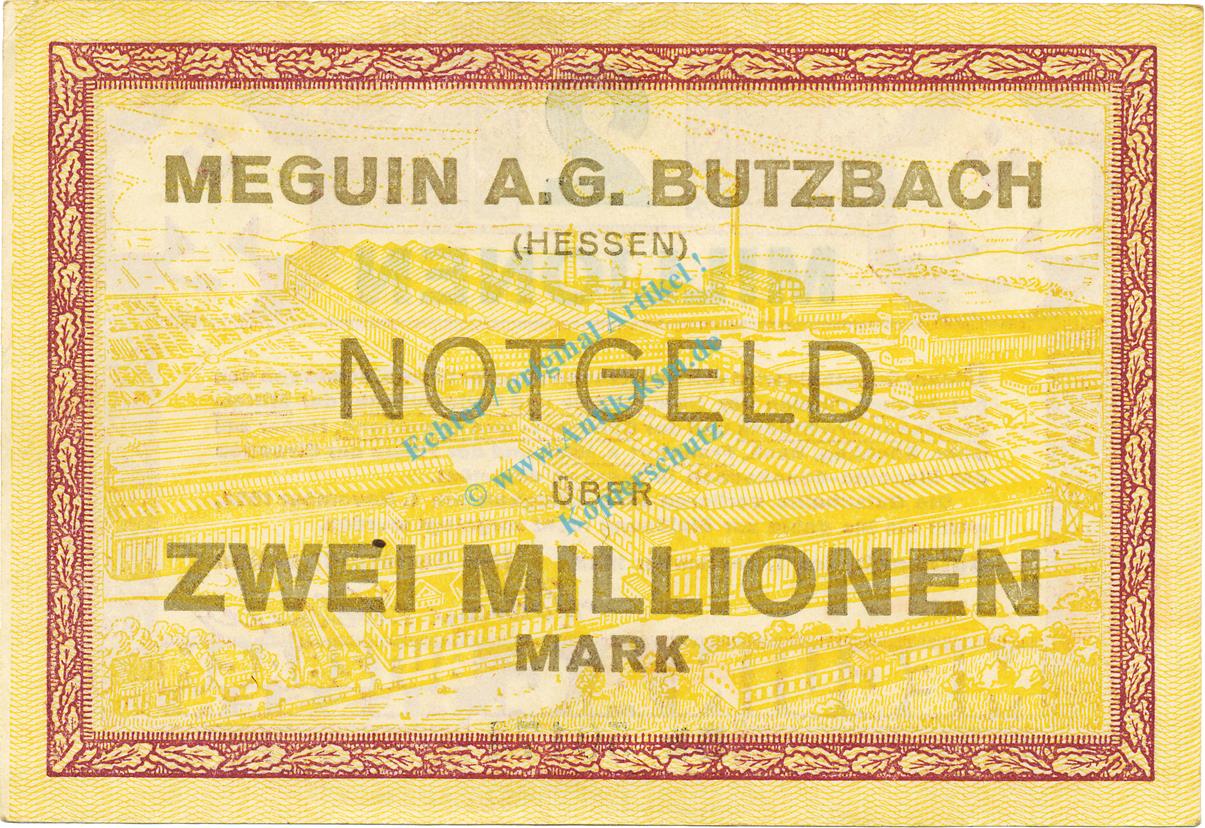 Butzbach , Banknote 2 Millionen Mark Schein unc-kfr. Keller 702.b , Hessen 1923 Inflation