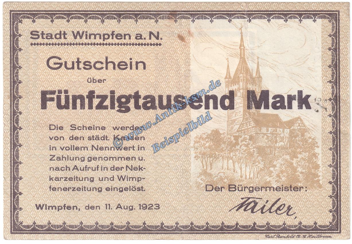 Wimpfen a.N. Banknote 50.000 Mark Schein in L-gbr. Keller 5642.a , Hessen 1923 Grossnotgeld - Inflation