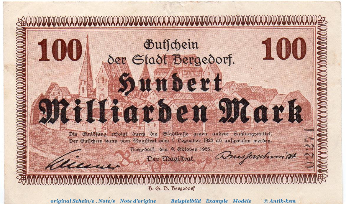 Notgeld über Einhundert Milliarden Mark , Stadt Bergedorf , Großnotgeld Inflation