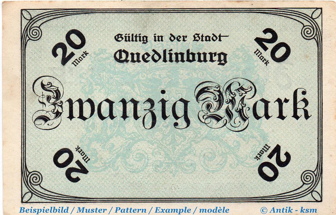 Banknote Quedlinburg , 20 Mark Schein in kfr. Geiger 430.03.a , Oktober 1918 , Provinz Sachsen Großnotgeld