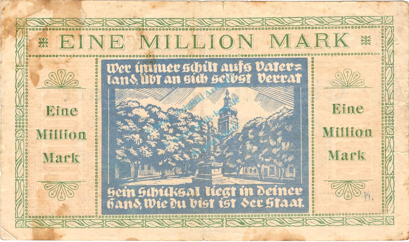 Genthin , Banknote 1 Million Mark Schein gbr. Keller 1722 , prov. Sachsen 1923 Inflation