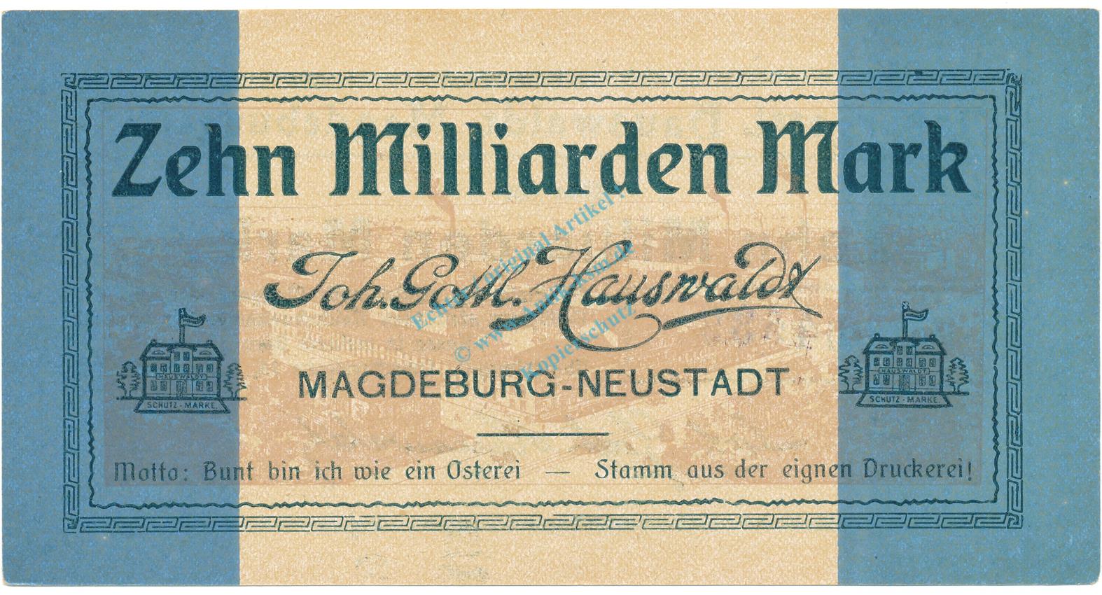 Magdeburg , Banknote 10 Milliarden Mark Schein unc-kfr. Keller 3415.e , Sachsen Anhalt 1923 Inflation